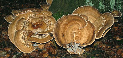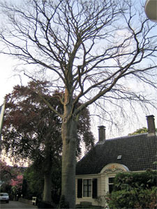 | Deze beuken waren een paar jaar geleden nog de trots van het dorp. Helaas heeft in korte tijd de reuzenzwam 1 van deze monumentale bomen de das omgedaan. Deze witrot veroorzakende zwam is een van de grootste veroorzakers van sterfte bij beuken doordat de zwam de wortels van de boom aantast. De boom wordt extreem gevoelig voor windworp ook hier rest maar 1 maatregel ter voorkoming van allerlei ellende: op korte termijn vellen. |