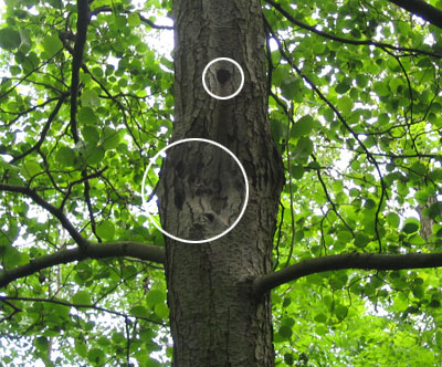 Een boom met zo een vergroeing en met ook nog eens een spechtegat is altijd een risico boom en dient altijd nader te worden onderzocht want zowel de vergroeing als de specht geven aan dat er bij deze boom iets absoluut niet goed zit de kans dat zo een boom afbreekt met alle gevolgen van dien is dan ook absoluut aan wezig. |