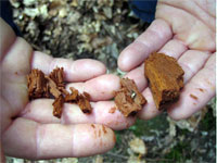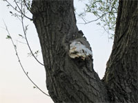 ![]() Deze wilg heeft een aantasting van de zwavelzwam. Dit is een bruinrot veroorzakende zwam die via takwonden binnenkomt en vervolgens kernrot veroorzaakt waarna de stam heel makkelijk kan afbreken of omwaaien. ![]() |